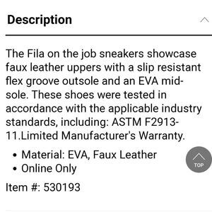 MENS Fila On The Job Slip Resistant Sneakers size 8 and 8,5