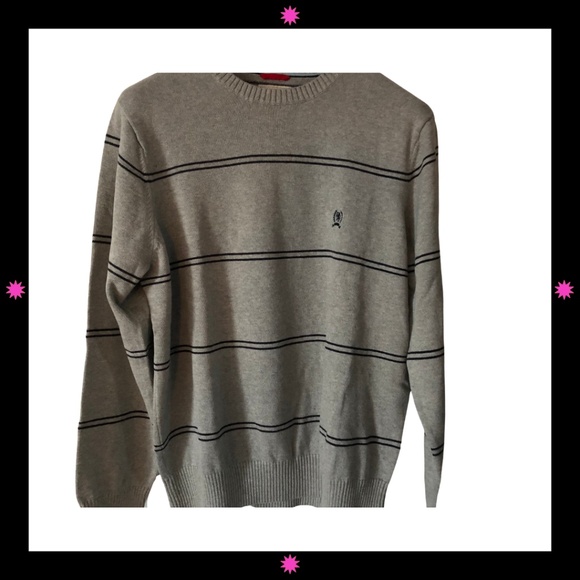 MEN'S GRAY SWEATER WITH NAVY BLUE THIN STRIPES BY TOMMY HILFIGER LARGE