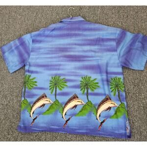 MEN'S "HAWAIIAN SHIRT BY BASIX"-Blue-Dolphins-Button Up-Tropical-Size XXL
