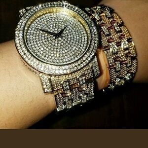 MEN'S HIP HOP QUAVO GOLD PT LUXURY WATCH & FULL IC