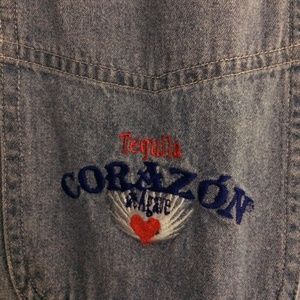 ONE OF A KIND JEAN SHIRT >>>> SIZE LARGE.. BUTTON DOWN COLLAR>>>>> ONE FRONT POCKET.... LOOKS BETTER THEN PIX....