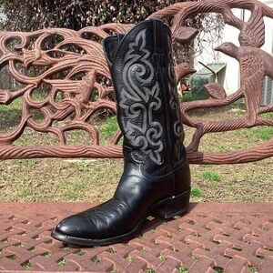 MEN’S Justin London 13” 1409 Black Leather Contrast Stitching Cowboy Boots