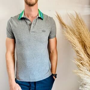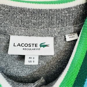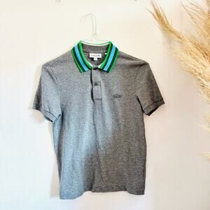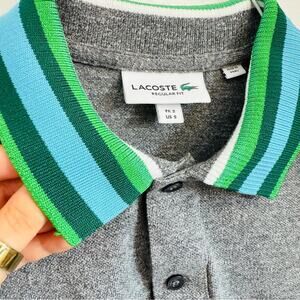MENS LACOSTE Grey Gray Light Blue Green Striped Button Polo Short Sleeve Shirt S