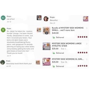 Mystery boxes are finally back! We had trouble keeping up with demand and had to take a little break, but we're trying something new. This time.each box is pre-curated by size/style and you get a sneak peak of the items inside. 5 pre-loved clothing items in good condition included in each "Not So Mystery Box" estimated retail value of $125+. New Boxes will be added daily as soon as they're available. This ensures that we're able to keep up with demand and ship them out quickly.