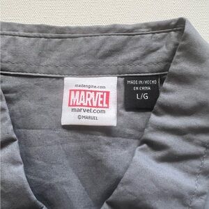 This Marvel shirt in a sleek gray hue offers a casual yet stylish look with its button-down design. Crafted from a durable fabric blend, it's perfect for everyday wear and showcases a subtle logo detail on the chest.
