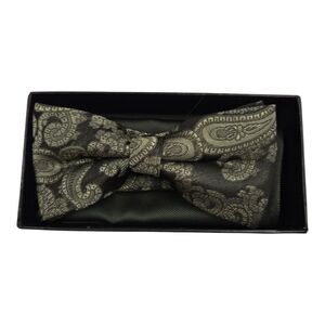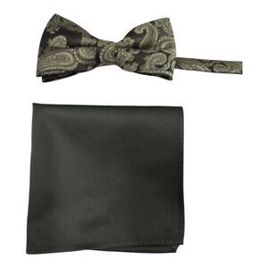 MEN'S LARR BRIO SIMPLY SOLID PAISLEY PRINT TARRAGON BOW TIE & POCKET SQUARE SET.