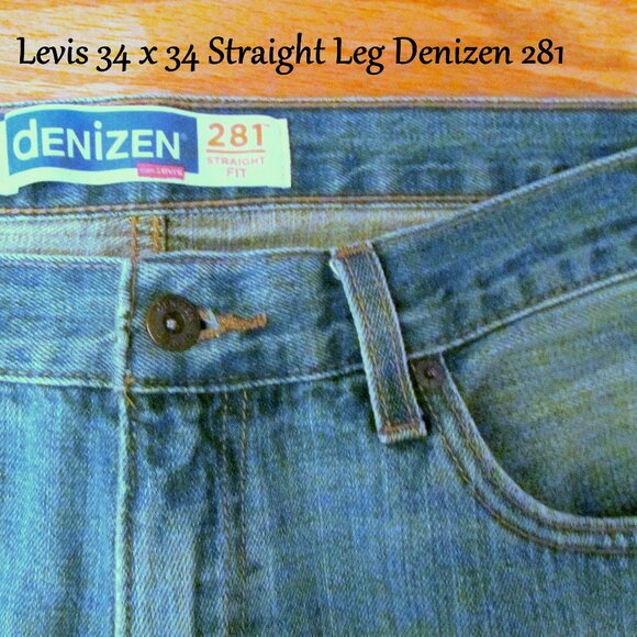 MEN'S LEVI'S DENIZEN 281 JEANS, 34 x 34 BLUE STRAIGHT LEG