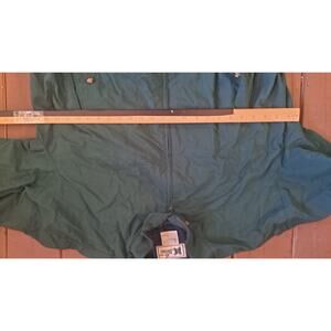 This men's LL Bean lightweight green flannel lined jacket in size XL regular is a vintage piece perfect for casual occasions. Made with a nylon outer shell and cozy fleece fabric lining, it features a front zip closure and a classic style suitable for everyday wear. The jacket offers a comfortable and stylish option for cooler weather, with a lightweight design making it easy to layer.