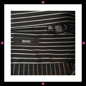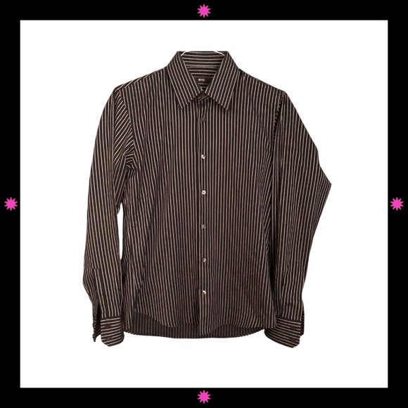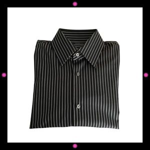 MEN'S LONG SLEEVE BLACK DRESS SHIRT WITH WHITE STRIPES BY BOSS 15 34/35