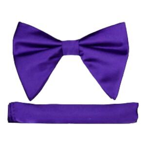 MEN'S MILANO MODA PURPLE OVERSIZED TEARDROP BOW TIE AND POCKET SQUARE. BT06.