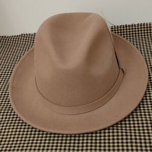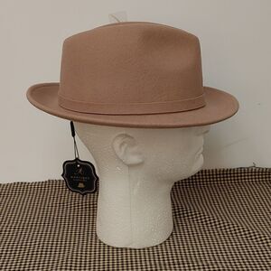 MEN'S MONTIQUE TAN 100% WOOL FELT 2 1/4" BRIM FEDORA HAT. H62