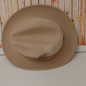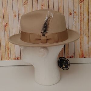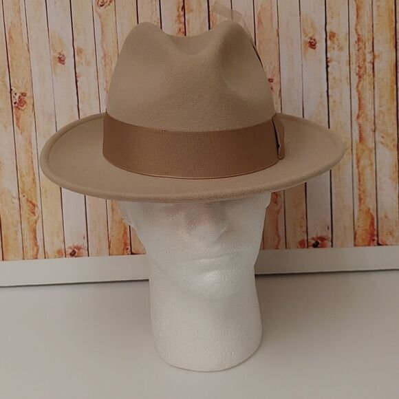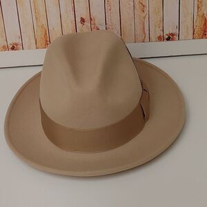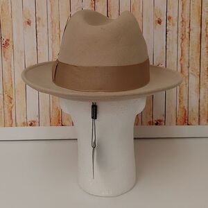 MEN'S MONTIQUE BEIGE LIGHT FELT 2 1/2" WIDE BRIM PINCH FEDORA HAT. H60