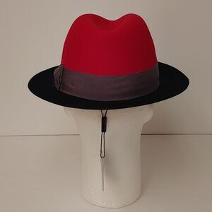 MENS MONTIQUE RED-NAVY 2 1/4" WIDE BRIM 100% WOOL FELT FEDORA HAT. H82
