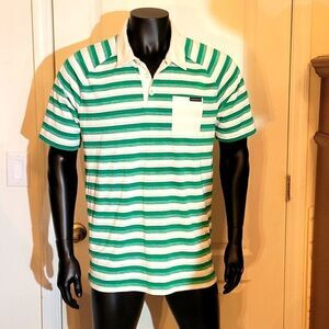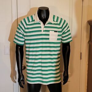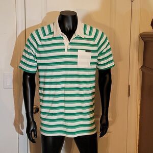 MEN'S OAKLEY REGULAR FIT POLOS SHIRT COLOR WHITE &GREEN SIZE LARGE SHORT SLEEVE POLOS SHIRT CLOSURE BUTTON WITH COLLAR THIS ITEMS IS PRE-OWNED EXCELLENT CONDITION YOU MIGHT MISTAKE FOR NEW CHECK THE PICTURES