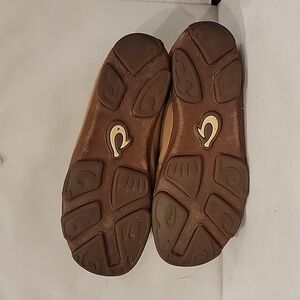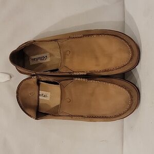 Men's Olukai Kipuka Hulu indoor/outdoor slippers. The shoes are in good condition with a tiny mark on the left shoe top. Other than this, they are in good condition. Please see all pictures.