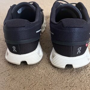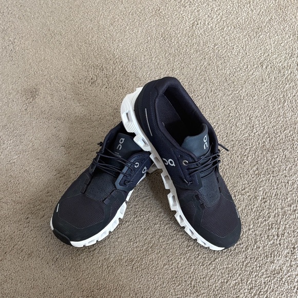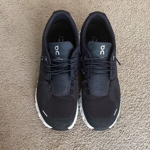 Sleek and stylish dark athletic shoes. Ideal for running and everyday wear. Lightweight and comfortable design. These shoes have only been worn once. They are just like brand new. A very good price for them.