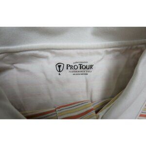 MEN'S ORANGE & YELLOW STRIPED SHORT SLEEVE POLO SHIRT - PRO TOUR - GOLF - SIZE L
