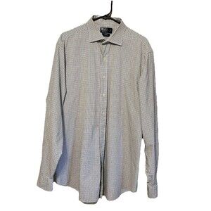The product is a Men's Polo Ralph Lauren Regent Classic Fit White Check Long Sleeve Dress Shirt in size XXL. This shirt is made of cotton with a woven fabric type, featuring a spread collar and barrel cuff style. The shirt is designed for a classic fit with a collared neckline and button closure. Perfect for formal occasions, the shirt offers a timeless and sophisticated look with the signature Polo Ralph Lauren brand.