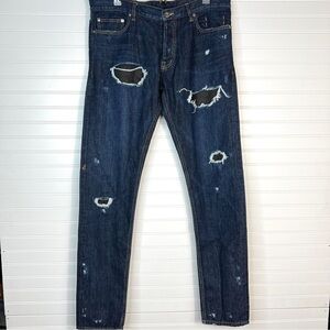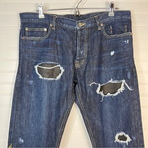 MENS PUBLIC SCHOOL PS13 NYC MADE LEATHER PATCHED DARK SLIM FIT JEANS 36x34