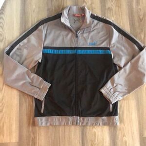 MENS PUMA JACKET RETRO LOOKING GRAY WITH TEAL AND BLACK EEEUC SIZE MEDIUM
