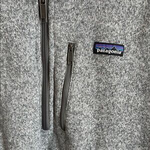 Experience warmth and versatility with this Patagonia gray zip-up sweater, featuring a cozy knit fleece texture and a relaxed fit. Ideal for casual outings, this sweater combines style and comfort effortlessly.
