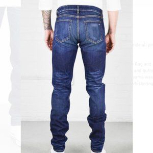 The mid rise slim FIT 2 by Rag and Bone has classic 5 pocket styling, contrast stitching and button fly closure. In the dark vintage inspired Clean Aoyama wash, this FIT 2 jean has a dark denim hue with realistic whiskering and wear affects.