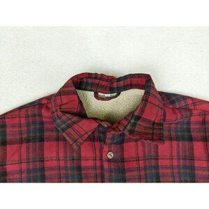 MEN'S RED PLAID FLANNEL FLEECE-LINED SHACKET - SIMPSONS X STEREO - SIZE L