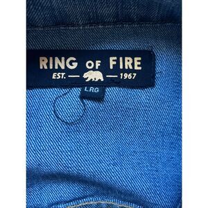 MENS RING OF FIRE PATCHED DISTRESSED DENIM JEAN JACKET SIZE L EUC