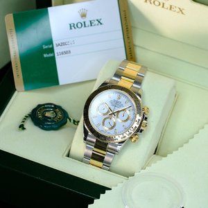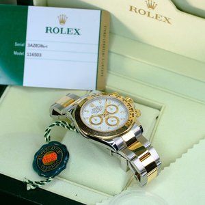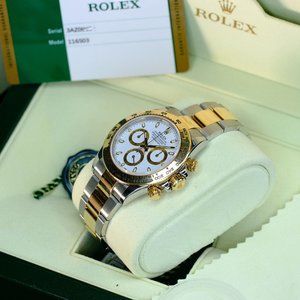 MEN'S ROLEX DAYTONA TWO TONE WHITE DIAL 40MM WATCH COMPLETE BOX & PAPERS-MINT
