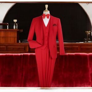 MEN'S ROYAL DIAMOND 3 PIECE SOLID RED 1 BUTTON VESTED SHAWL TUXEDO. TU-4.