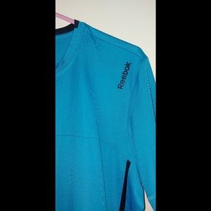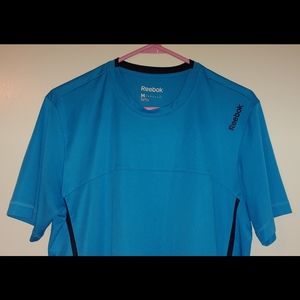 Excellent pre-owned condition. Size medium. 100% polyester. Machine washable. Solid aqua blue with black trim. Colors can vary due to individual screen settings. Smoke free home. All offers are welcomed.
