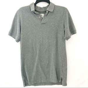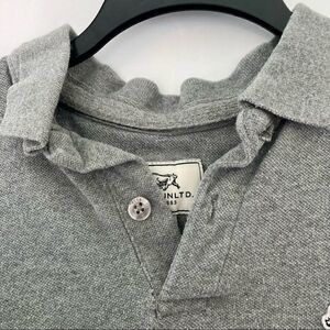 Ecko Unlimited brand. Size small. Men’s gray short sleeve polo top with a rhino embroidered on the chest. Casual shirt with collar and two buttons down neck. In preloved condition, no visible flaws (see photos for condition); as with any preowned clothes, you should wash before wearing the first time. Material tag cut out; still has extra button attached.