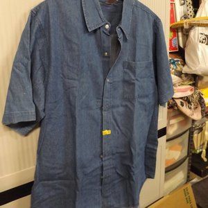 MEN'S SHORT SLEEVE DENIUM SHIRT, LARGE, 100% COTTON