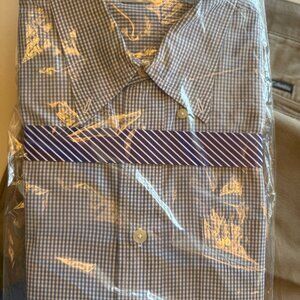 Dress up or Dress down this like new men's shirt with blue and white gingham design made by IZOD in size XL (regular fit) and SHORT sleeved. This shirt has only been dry cleaned and is ready to pack in your travel bag for work or play. Non-smoking home.