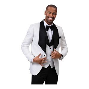 MEN'S SOPRANO WHITE TONE ON TONE DESIGN BLAZER & VEST J64. PANT IS NOT INCLUDED.