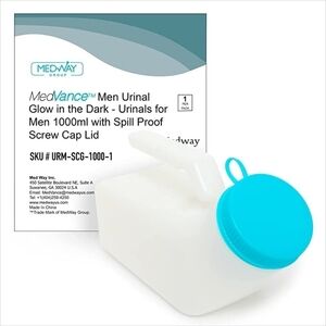 MEN'S GLOW IN THE DARK URINAL, Men 35oz./1000ml with Spill Proof Screw Cap Lid, Plastic Urine Collection Bottles for Men, Urine Container, Men's Portable Urinal Bottle for Travel, Elderly, or Incontinence NWT