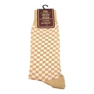 MEN'S ST. PATRICK BEIGE/IVORY CHECKERBOARD PATTERN ANKLE LENGTH DRESS SOCK S38-4