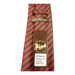 MEN'S ST. PATRICK BLACK/RED THIN DIAGONAL STRIPE TIE & POCKET SQUARE SET.