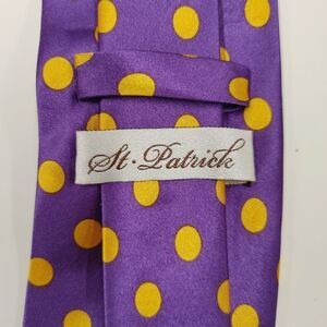 MEN'S ST. PATRICK PURPLE/GOLD POLKA DOT TIE AND POCKET SQUARE SET.