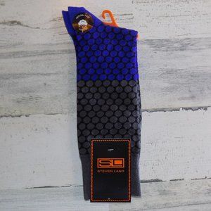 MEN'S STEVEN LAND FANCY DRESS SOCKS ~ Grey w/Blue