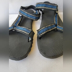 Men's Teva sandals with hook & loop closures (sz 12). The sandals are in good condition except for a tiny mark on the left toe. Please see all pictures.