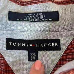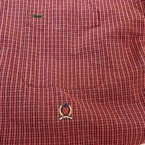 Men's Tommy Hilfiger Dress Shirt, Red Plaid, Long Sleeve, Button-Down Collar, Adjustable cuffs. Tommy emblem below the front breast pocket. Like new condition. Size XXL