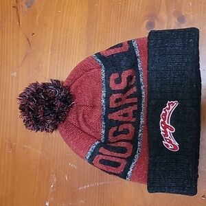 pre owned Washington state cougars below zero cuffer knit hat with pom. in excellent condition