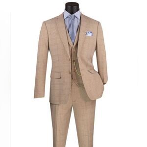 MEN'S VINCI 3 PIECE SLIM FIT SUIT BEIGE GLEN PLAID SV2W6.