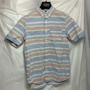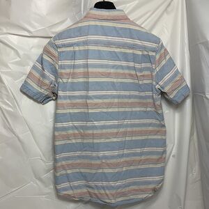 Men’s Vans Light Blue Red Yellow Striped Button Down Short Sleeve Shirt Size Small