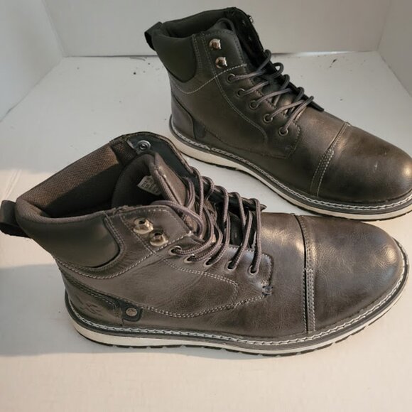 THE XRAY MENS ANKLE BOOTS ARE A STYLISH AND VERSATILE OPTION FOR VARIOUS OCCASIONS. MADE WITH FAUX LEATHER AND FEATURING A CAP TOE DESIGN, SOLID BROWN COLOR MAKE A STURDY MENS BOOTS, PRE-0WNED, SIZE 10 1/2, GREAT CONDITION.