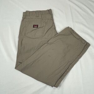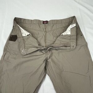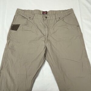 The Wrangler Workwear Technician Relaxed Fit Rip-Stop TECH 6 Pocket Pants are a versatile and durable option for men seeking comfortable yet practical clothing. Made with a rip-stop fabric and featuring a relaxed fit, these pants are designed for various occasions including travel, casual outings, workwear, and business use. With a zip fly and button closure at the waist, these pants offer both style and functionality. The pants also come in a solid beige color, allowing for easy coordination with different outfits. Featuring multiple pockets, including a unique phone-like pocket design, these pants provide both style and convenience.
