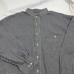 Men’s Yves Saint Laurent Black White Checkered Button Down Long Sleeve Shirt Size 17 32-33. Straight band collar.