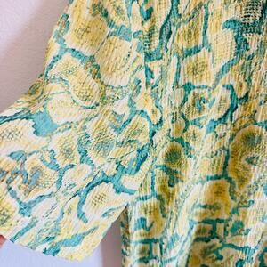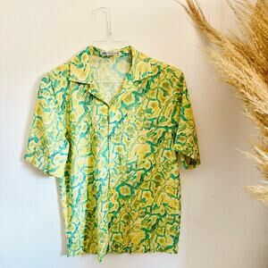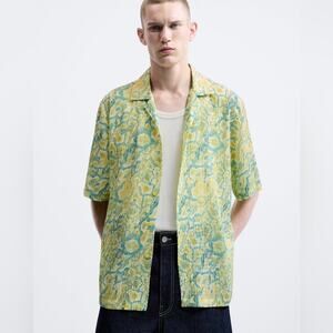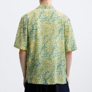 MENS ZARA Yellow Blue Green Snakeskin Print Button Down Short Sleeve Shirt Top S