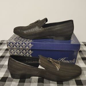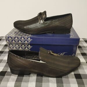 MEN'S AMALI METALLIC STRIPED DESIGN SLIP ON SHOE WITH TASSEL.